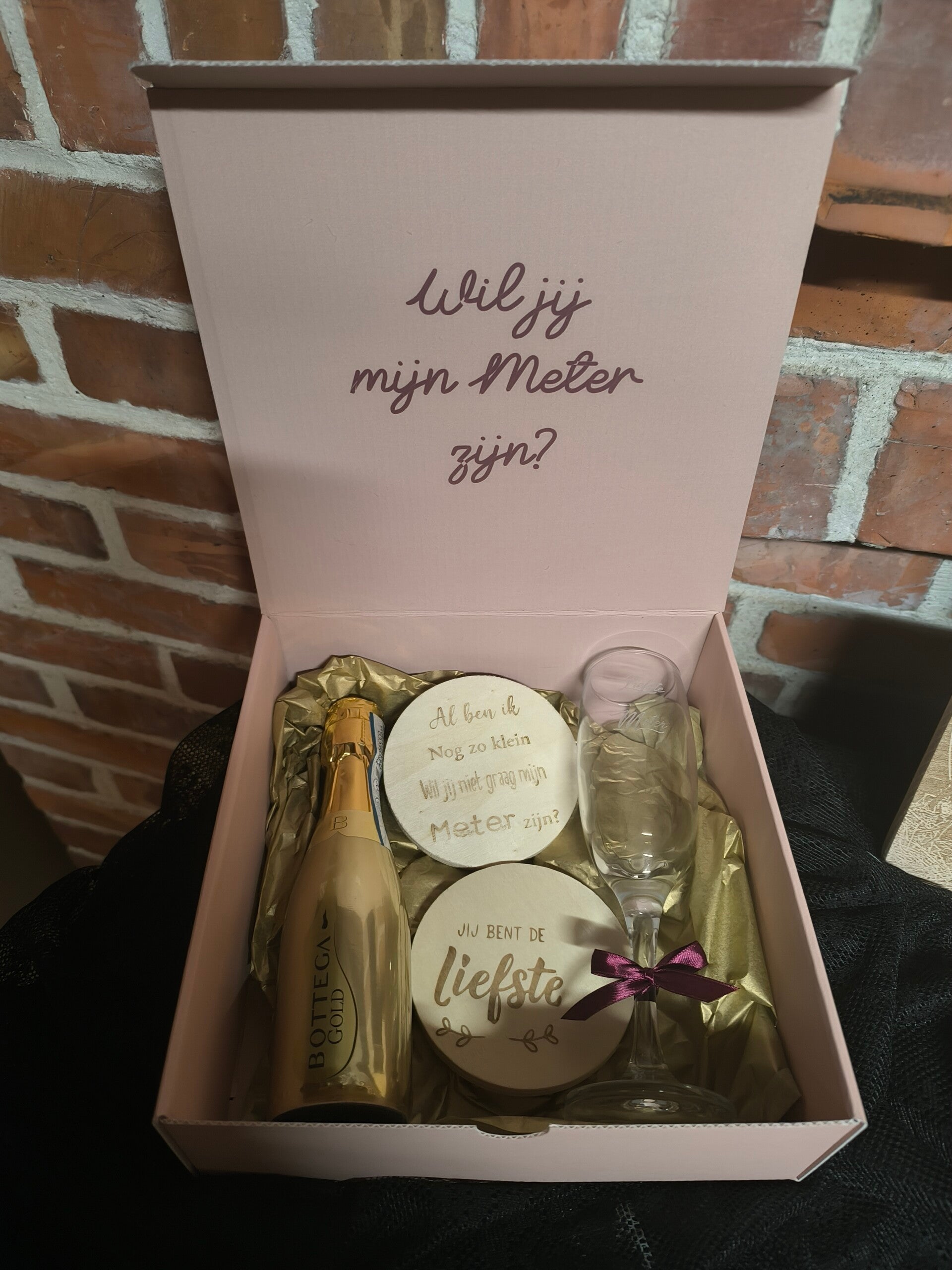Er kan gerust ook tekst op de doos gezet worden( wil jij mijn ...)