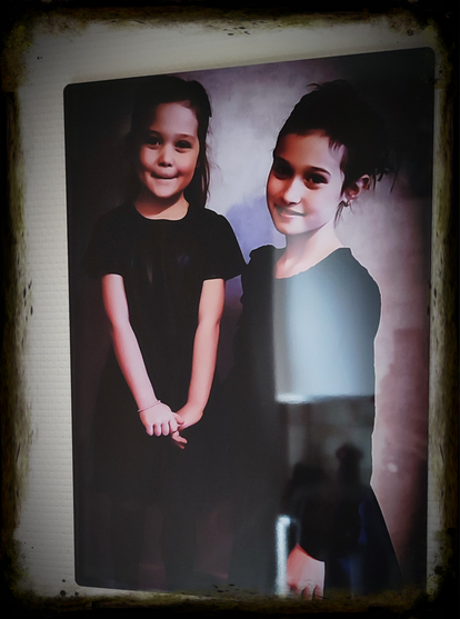 Bedrukt met tekst naar wens en foto naar wens op hexagon.